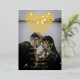 Die Goldfolie filigranes Herz und Einladungs-Drehbuch überlagert das Foto der Paare in dieser romantischen modernen Hochzeitseinladung. Das filigrane Herz hat ein Vintages volkstümliches Valentingefühl, während die reale Goldfolie diesem individuellen Hochzeitsstandort Eleganz und Romantik verleiht. Verwenden Sie die Rückseite für ein zweites Foto mit oder ohne Filter. Eine schöne Wahl für eine Valentiner Hochzeit.