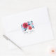 Elegantes Hochzeitsaufkleber-Design mit schönen Aquarellfarben-Rose und blauem Blattwerk. Die Aufnahme kann individuell angepasst werden.