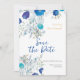 Romantische, blaue Blütenhochzeit Speichern Sie die Datumskarte.