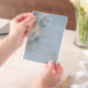 Romantische Dusty Blue Watercolor Blumenvellum Wedding Einladungen mit dustig blauen Zeleste- und Delphinium-Blume mit Eukalyptusgrün mit Schmetterlingen. Fügen Sie Ihren eigenen Text in elegantem, modernem Kalligrafieschrift hinzu. Für Sie entworfen von Evco Studio www.zazzle.com/store/evcostudio