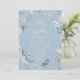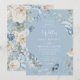 Romantische Dusty Blue Watercolor Blühende Hochzeitseinladungen mit dustig blauen Zeleste- und Delphinium-Blume mit Eukalyptusgrün und Schmetterlingen. Fügen Sie Ihren eigenen Text in elegantem, modernem Kalligrafieschrift hinzu. Für Sie entworfen von Evco Studio www.zazzle.com/store/evcostudio
