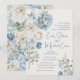 Romantische Dusty Blue Watercolor Blühende Hochzeitseinladungen mit dustig blauen Zeleste- und Delphinium-Blume mit Eukalyptusgrün und Schmetterlingen. Fügen Sie Ihren eigenen Text in elegantem, modernem Kalligrafieschrift hinzu. Für Sie entworfen von Evco Studio www.zazzle.com/store/evcostudio