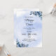 Erleben Sie mit diesem Blue Floral Wedding Einladung einen bleibenden Eindruck mit weichen blauen Pfannkuchen und elegantem Drehbuch. Ideal für romantische, rustikale oder ländliche Hochzeiten. Anpassen Sie mühelos an Ihr Hochzeitsthema und Ihre Farben.