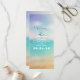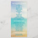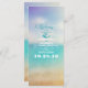 Elegantes Hochzeitsprogramm am Strand mit farbenfrohen, blauen Vanillefarben. Modernes, aber Vintages typografisches und modernes Hochzeitsprogramm für einen hellen Tag an der Hochzeit am Strand.