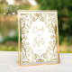 Das ist ein perfektes Hochzeitskarten & Geschenke, Tischdekor, das sich königlich, romantisch und elegant anfühlt, mit einem sanften, goldenen Glitzer Blumenrahmen-Design mit Blätter und eleganter Goldtypografie. Ideal für Herbst- und ganzjährig.