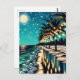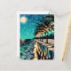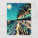 Hübsche romantische Küste behaltend in der Touch vermisst Sie Postkarte. Ai-Kunst, die eine Reihe von Palmen mit illuminierten weißen Lichtern auf ihnen darstellt. Eine hübsche Reflexion über den Sandstrand und die Wellen.