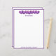 Verschaffen Sie sich einen einzigartigen und persönlichen Stil in der maßgeschneiderten Schreibwarenhandlung. Romantische Hübsche Reihe von Lila Herzen Personalisiertes Schreiben Papier. Personalisieren Sie Ihre Daten mit Namen, Initialen, Nachrichten, Zitaten oder allem, was Sie wünschen. Verwenden Sie die zweite Zeile für Adresse, Website oder andere Informationen - kann entfernt werden, wenn Sie möchten. Das hintere Blatt passt zum Farbthema.