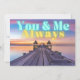 Romantische und moderne Karte zeigt Foto von tropischen Inselbootdock bei Sonnenuntergang mit Neon aqua und Gold Text, der lautet "You and Me Always". Anpassbarer Text zum "glücklichen Jubiläum" auf der Rückseite