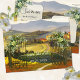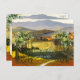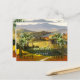 Eine originelle, Save the Date Postkarte mit einem schönen Kunstgemälde einer italienischen Landschaft in festlichen Farben.