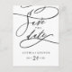Diese romantische Kalligraphie Ankündigung Datum freihalten Postkarte ist perfekt für eine einfache Hochzeit. Das moderne klassische Design besticht durch extravagante Wirbel und skurrile Schnörkel mit einer prächtigen, eleganten Typografie.