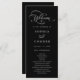 Dieses Schwarz-Weiß-Hochzeitsfeierprogramm besticht durch eine elegante, romantische Wirble Kalligraphieschrift mit einem formalen Schrift. Für eine weiter gehende Anpassung dieses Designs klicken Sie bitte auf den BUTTON BLAU DESIGN TOOL oben!