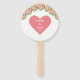 Elegantes romantisches Korallenrosa Herz und Aquarellpinke Blume auf weißem Handfan. Text und Bild für Hochzeiten, Jahrestage, Geburtstage und andere Veranstaltungen personalisiert.