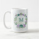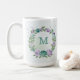 romantische lila Blumen mit einigen grünen Blätter botanische Kaffee-Tasse.