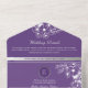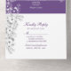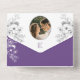 Feiern Sie zeitlose Romantik mit dieser Vintag inspirierten Alleinverzeihungseinladung mit lila Hintergrund und modernem silberweißem Boho-Blumenzauber. Elegant und bezaubernd verbindet dieses Design Vintagen Charme mit modernem Komfort - ideal für romantische, boho oder klassische Hochzeiten. Passen Sie Ihre Lieblings-Foto- und Monogramm-Initialen an, um sie einzigartig zu machen. Bietet Platz für Ihre Hochzeitswebsite und UAWG, sodass sie so praktisch wie schön ist. Eine schicke und unvergessliche Art Ihre Liebe zu erzählen. Bitte beachten Sie: Diese Einladung erfordert einen separaten Briefumschlag. Wir empfehlen die Verbindung mit einem A9-Umschlag (5,75" x 8,75") für die beste Passform.