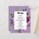 Diese halbbuchstabengetreue MENU-Karte wurde entworfen, um sich mit der Romantik Lila Floral Bouquet Collection dieses Shops abzustimmen. Für passende Artikel können Sie A126 in der Suchbox dieses Shops schreiben oder einfach dem Link https://www.zazzle.com/collections/romantic_purple_floral_bouquet_collection_a126-119096731530167698 folgen
