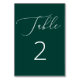 Romantische Moderne Deep Emerald Green Script Hoch Tischnummer