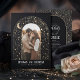 Lassen Sie sich von diesem außergewöhnlichen Foto verzaubern, das Sie mit Romantik und Charme verzaubern wird! Vom ersten Blick aus zeigt es Ihre Liebe auf die bezauberndste Art und Weise. Ihr liebstes Foto - vielleicht diese perfekte Verlobung - gerahmt von einem Mitternachtshimmel, der mit goldenen Sternen, einem leuchtenden Mond und traumhaften Planeten bestreut ist, die alle in Form eines mystischen Bogens eingewickelt sind. Es ist wie das Öffnen des Titelbildes eines Märchens, in dem Ihre Liebe wirklich "Geschrieben in den Sternen" ist. Diese Einladung ist mehr als nur wunderschön; sie fängt die skurrile, sternige Magie Ihres großen Tages auf eine Weise ein, die niemand vergessen wird!