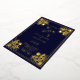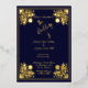 Ein eleganter und romantischer Goldenen Foil Rahmen auf einem Navy Blue Hintergrund mit goldfarbenem Text auf dieser wunderschönen Hochzeitseinladung. Ein verzierter Rahmen und Text Ihrer Wahl, wenn Sie den Schriftart ändern gewollt haben. Hintergrund ist eine Navy Blue Farbwahl. Das kann auch in beliebiger Farbe bearbeitet werden. Comes mit weißen Umschlägen