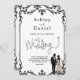 Diese elegante Schwarz-Weiß-Einladung eignet sich ideal für eine moderne Hochzeit. Das schlichte Design zeichnet sich durch eine elegante schwarze Kalligraphie, einen schicken schwarzen Rahmen und eine Braut- und Bräutigkleidung auf einem sauberen, weißen Hintergrund aus. Die Einladungskarte enthält die Hochzeitsdetails auf der Rückseite, anstatt für eine separate Kapselkarte zu bezahlen.
