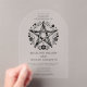 Ein Pentagramm aus Holz, eingebettet in pulsierende Blumen, steht im Mittelpunkt dieser durchsichtigen Acrylhochzeitseinladung, symbolisiert die Elemente, männlich und weiblich, und den ewigen Lebenszyklus. Wir laden Sie ein zu dieser Feier mit unserem naturzentrierten, rustikalen, erdigen Stil einzigartigen Hochzeit Acrylblumen Pentagramm. Verfügbar in klar oder mattiert.