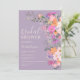 Romantische pastellwilde Blume Frühjahr Sommer Brautparty mit hübschen wilden Blume in Rosa, Pfirsich, lila, Lavendel, grünen Blätter und mehr, mit einer gebürsteten Schrift Typografie auf einem eleganten bearbeitbaren weichen Lavendel lila Hintergrund.