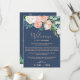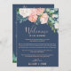 Diese romantischen, blauen Begrüßungsbriefe & Reisekarten sind perfekt für eine elegante Hochzeit. Die Blumenmotive sind in Rosa, Pfirsich und Weiß gehalten, die Blume in den Aquarellfarben sind auf marineblau gehalten. Auf der Vorderseite der Karte befindet sich ein Begrüßungsschreiben, auf der Rückseite der Karte befindet sich der Hochzeitstag. Diese Noten sind ideal für Hochzeiten in Urlaubsort und Begrüßungstaschen für Hotelgäste.