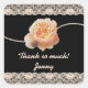 Romantische PfirsichRose mit Imitaten auf schwarz Quadratischer Aufkleber