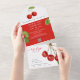 Romantische Retro Red White Cherry Frucht QR Hochz All In One Einladung