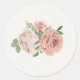 Romantische Rosa Blume & Blätter Runder Aufkleber