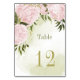 Eine wunderschöne botanische Tischnummer mit romantischen rosa Blume mit grünen Blätter und goldenen Blüten. Die Details des Glitzer werden simuliert. Für weitere Informationen klicken Sie bitte auf die obige Sammlung oder kontaktieren Sie mich.