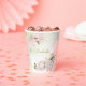 Romantische rosafarbene Blume mit grünen Blätter botanischer Papiertasse Die Einzelheiten des Glitzer werden simuliert. FÜR WEITERE PASSENDE PRODUKTE kontaktieren Sie mich.