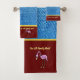 Romantische rosa Flamingos mit denim Textur .rot Badhandtuch Set