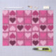 Ein Muster horizontal basiert auf einfachen grafischen Herzen und durch farbige Linien des Körpers vertikal geteilt. Jedes Herz auf seinem eigenen Quadrat. Alle Herzen, die quadratischen Hintergründe und die Linien schwanken in die Farben, die von hellrosa zum burgund überspannen. Süß und romantisch, passend auf Valentinsgrüßen oder etwas Romance gerade jederzeit vorführen! Es gibt auch eine Version mit viel kleineren Herzen.