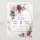 Romantische pinkfarbene bordeauxfarbene, weiße Blume und geometrische grüne Blätter Save the Date Einladung Die Details des Glitzer werden simuliert