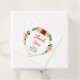 Diese wunderschöne und elegante Babydusche, die sich durch das Label auszeichnet, ist mit den Rose Aquarell, Rosa und Orange mit Blattwerk auf einem geometrisch goldenen Rahmen versehen. Der Text kombiniert handgeschriebene Skript- und Serif-Schriftart für ein stilvolles und modernes Aussehen. Das ist perfekt für eine sommerliche rustikale Babydusche.
