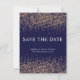 Elemente: reale Rose Goldfolie, klassische Serif-Schriftart, Sternenstaub-Design. Farben: Marineblau, Rose Gold, Weiß. Themen: romantisch, Nachtfeier, modern, whimsical, Luxus, Glam, Sterne, Astronomie, elegant, raffiniert. Sammlung: Romantische Rose Gold Stardust Collection Art: Save the Date