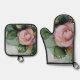 Romantische Rose Weißrosa Goldene Liebe Ofenhandschuh & Topflappen-Set