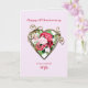 Eine sehr romantische und elegante 28. Hochzeitstag-Karte. Eine schöne Karte, die Sie Ihrer Ehefrau geben können. Ein goldenes Herz mit einem Bouquet gemalter Rose.