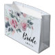 Das schöne und sehr feminine Geschenksack-Design für die Braut mit rosa und weißen Rosen auf hellblauem Hintergrund.