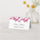 Romantisches rotes Herzballon Thema individuelle Hochzeit Platzkarte. Geklappte Platzkarten für Tischsitze. Teil eines erschwinglichen Kollektions-Set mit niedlichen Dekorationen und eleganten Schreibwaren. Tausende und ein rotes Herz Ballons Illustration. Personalisieren Sie mit dem Namen der Braut und Bräutigam.