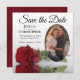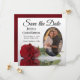 Romantische Rote Rose auf Weiß mit Oval Foto Hochz Save The Date