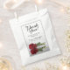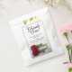 Diese wunderschönen Gastgeschenk Hochzeiten-Taschen sind eine gute Möglichkeit, um Ihren Gästen zu danken, dass sie Teil Ihres besonderen Tages sind. Das Design umfasst einen Single mit einer langen rote Rose, die auf der Seite liegt und in einem Wasserbecken mit Wellen und Wellen reflektiert. Die Unterschrift lautet: Danke, dass du mit uns gefeiert hast. Es gibt Platz für die Namen des Paares und das Hochzeitstag.