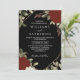 Schwarz Romantische rote Rosen mit Blätter und botanischen Kranz Gold Rahmen Blütenhochzeit Einladung mit elegantem Goldrahmen mit rote Rosen und Blätter in Gold und Grün. Eine perfekte Winterhochzeit oder Neujahr Hochzeit in tiefer Farbe. Bitte kontaktieren Sie mich für Hilfe bei der Anpassung oder wenn Sie ein anderes Produkt mit diesem Design benötigen.