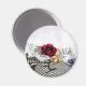 Eine hübsche feminine romantische rote Rose und ein Foto in einem weißen Spitzen-Hochzeitsgarten, ideal für eine neue Braut oder als romantisches Valentinstag-Geschenk