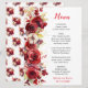 Romantische Rote Rosen Blumenhochzeit Menükarte