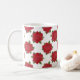 Eine romantische Coffee-Tasse, die Sie individuell gestalten können, mit einem überallten Muster von Rote Rosen, auf einem weißen Hintergrund, den Sie ganz einfach ändern können, wenn Sie möchten. Teil der Posh & Painterly 'Hearts and Rose' Kollektion von Judy Adamson, kann dieses Muster an jede Tasse angepasst werden.