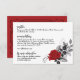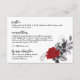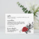 Diese romantische Informationsüberdachungskarte verfügt über eine rote Rose, die mit schwarzem und grauem Blattwerk verwoben ist. Die Rückseite ist ein schwarzer Rahmen auf einem roten Hintergrund. Kaufen Sie die koordinierenden Gegenstände, die Sie in unserer Kollektion "Intertwined Romantic Rote Rosen" finden können (separat verkauft).