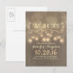 schöne, Vintage Save the Date Postkarte mit Streichlichtlampen, Schmetterlingen, extravaganter Typografie und alter Grunge Hintergrund. Ideal Save the Date für skurrile rustikale Hochzeiten mit Seilleuchten oder Laternen.