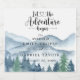 Wasserfarben in Blues und Grüntönen bezaubern Bergwald-Hochzeitsetiketten für Ihren Empfang, mit dem immer beliebten Ausdruck: lass dem Abenteuer beginnen. Für diejenigen, die eine romantische Waldlandschaft Liebe. Die vollständige Sammlung der für dieses Design passenden Materialien finden Sie unter: https://www.zazzle.com/collections/rustic_forest_mountain_wedding-119965625201006103