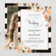 Modernes und elegantes Design gedruckt Romantische Drehbuch Herbst Terracotta Floral Schwarz-weiß & Gold Glitzer Rahmen Foto Wedding Einladung, die mit Ihrem Text angepasst werden kann. Bitte klicken Sie auf den Button "Anpassen" und verwenden Sie unser Designwerkzeug, um diese Vorlage zu ändern. Karo im Grafikdesign-Store für andere Produkte, die diesem Design entsprechen!